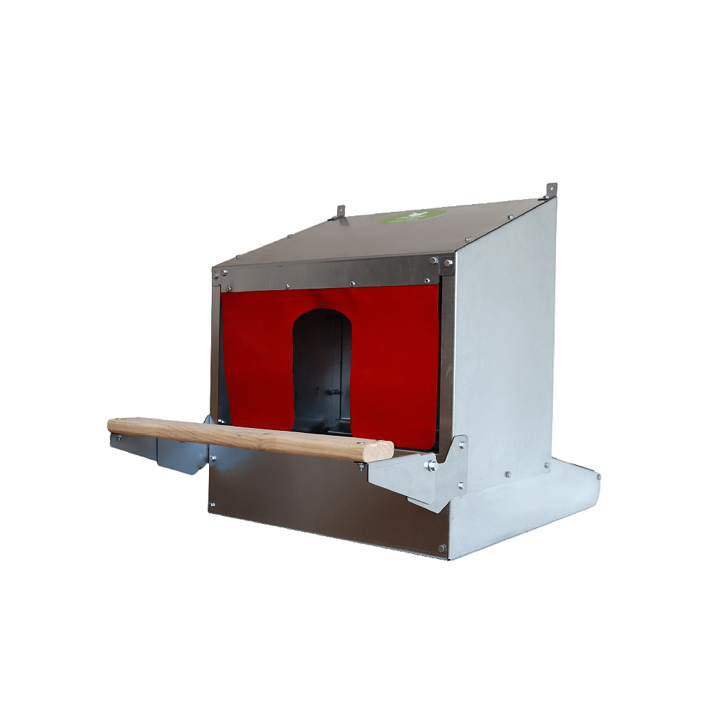 • U-şekilli perdeler: Tavukların folluk kutusuna kolay erişimini sağlar ve aynı zamanda güvenli ve emniyetli bir folluk alanı hissi verir. Üstelik perdenin kırmızı rengi tavukları cezbediyor, çünkü tavuklar doğal olarak bu gölgeye ilgi duyuyor.
